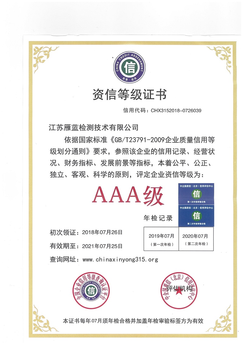 ? 江蘇雁藍檢測科技有限公司 2021 All Rights Reserved.